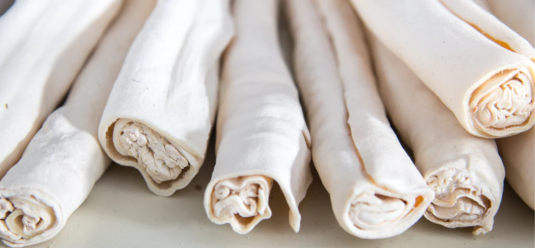 Rawhide is made from dried animal skin, is is created from waste products from the meat industry. There are a few steps that go into creating the end products.
